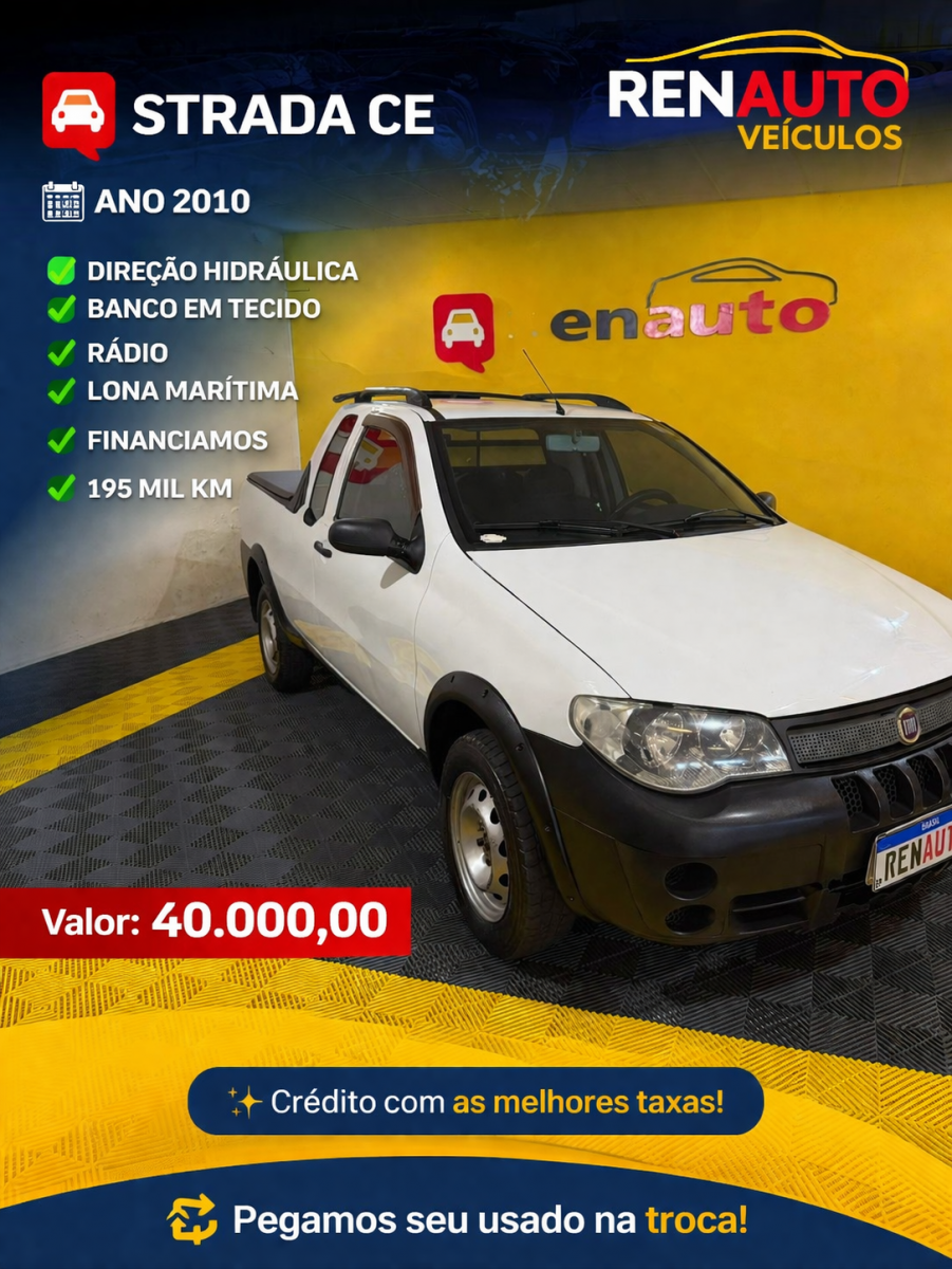 🚘 STRADA CE 🗓 ANO 2010 ✅ DIREÇÃO HIDRÁULICA ✅ BANCO EM TECIDO ✅ RÁDIO ✅ LONA MARÍTIMA ✅ FINANCIAMOS ✅ 195 MIL KM ✅ 💰Valor: 40.000,00 🔄 Pegamos seu usado na troca! ✨ Crédito com as melhores taxas!